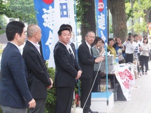 連合の皆さんの「国会前怒りの座り込み行動」に激励に駆け付けました。 労働者派遣法の改悪阻止に向けて、共に頑張りましょう。