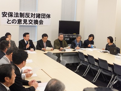 安保法制に反対する市民団体との第4回の意見交換会に出席しました。 各団体・政党から取り組みの報告をした後、意見交換をしました。